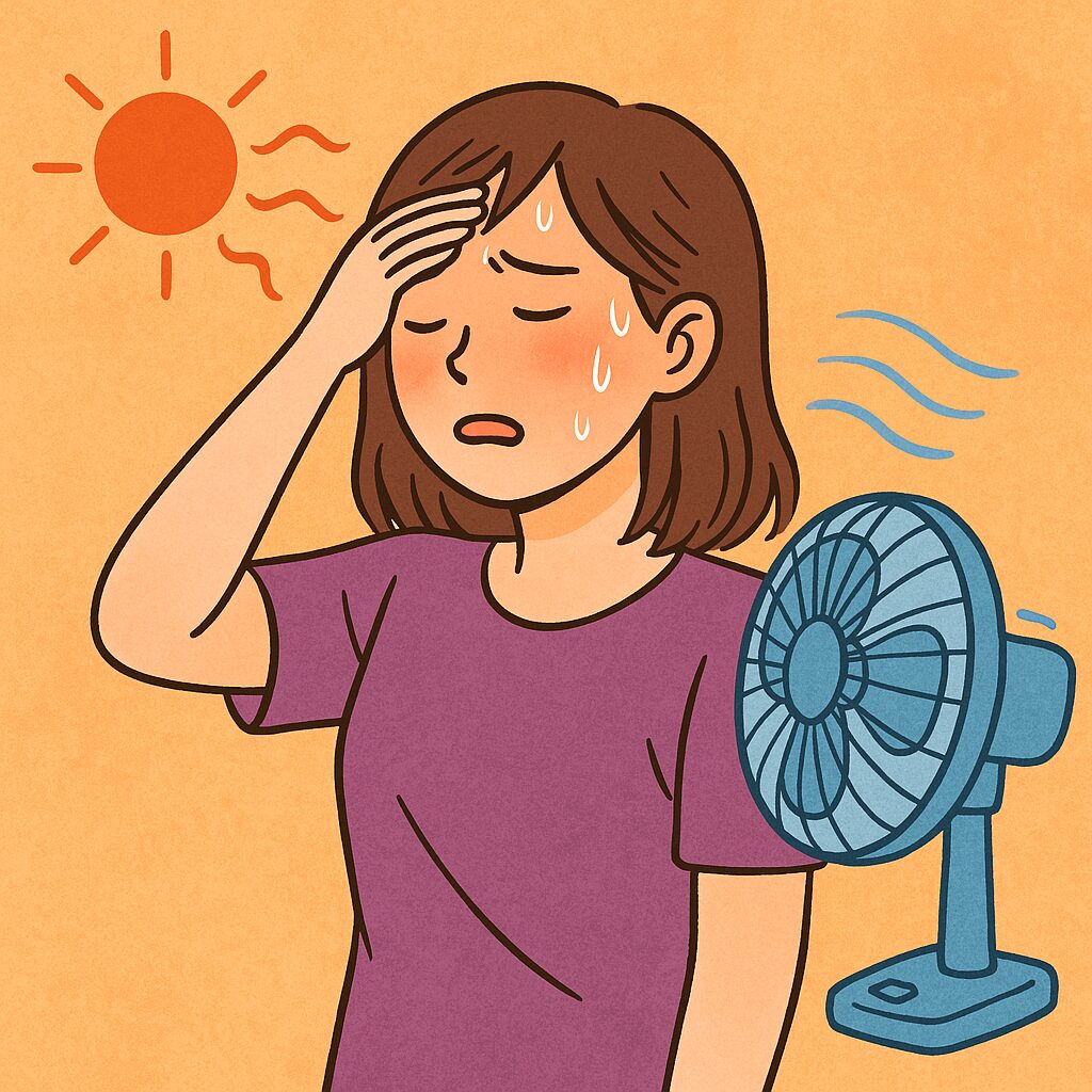 せやからエアコン+扇風機のダブル攻撃しても、体が冷めへん!「代謝マン」の夏はほんま地獄やな。